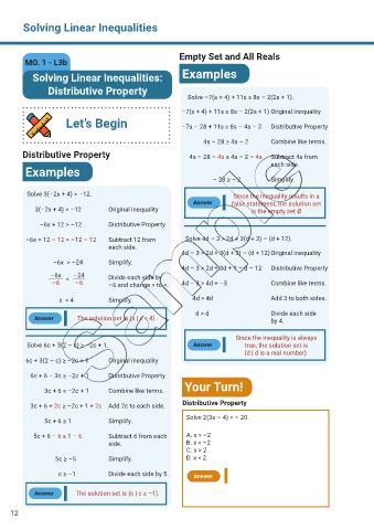 Solve 3(–2x + 4) > –12. Since the inequality results in a