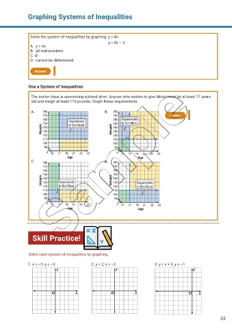 1. x > –1, y < –3 2. y > 2, x < –2 3. y > x + 3, y < –1