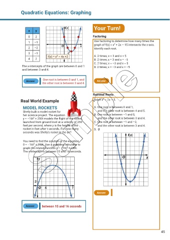 Shelly built a model rocket for and the other root is between 4 and 5.