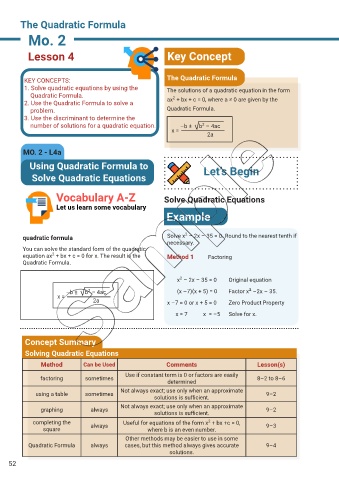 1. Solve quadratic equations by using the The solutions of a quadratic equation in the form