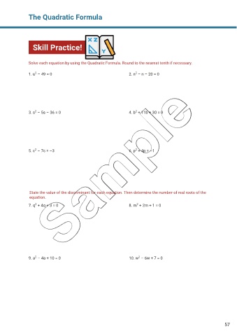 Solve each equation by using the Quadratic Formula. Round to the nearest tenth if necessary.