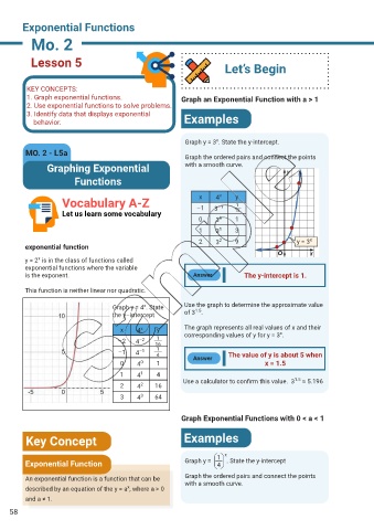 1. Graph exponential functions. Graph an Exponential Function with a > 1