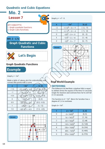–1.5 –2(–1.5) = –4.5 (–1.5, –4.5) The distance d in feet that a skydiver falls is equal