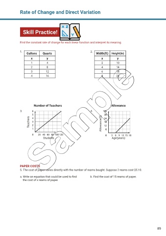 5. The cost of paper varies directly with the number of reams bought. Suppose 2 reams cost $5.10.