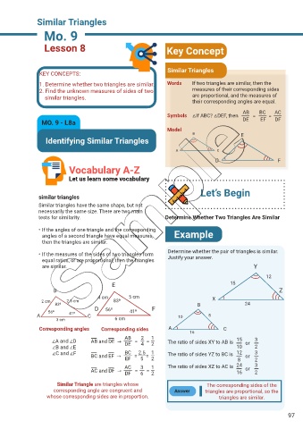 ∠C and ∠F BC and EF → = = 1 The ratio of sides YZ to BC is 12 3