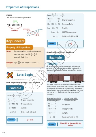 10 : 20 = 2 : 4 (4x – 5)6 = 3(–26) Cross products
