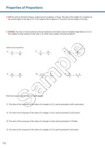 13. The ratio of the measures of the sides of a triangle is 5:6:9, and its perimeter is 220 meters.