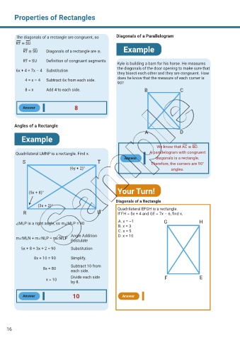 The diagonals of a rectangle are congruent, so Diagonals of a Parallelogram