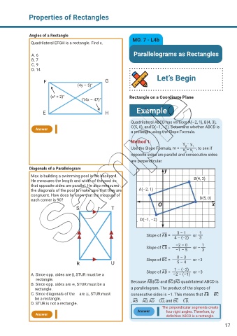 C. Since diagonals of the ▱ are ≅, STUR must consecutive sides is –1. This means that AB ▱ BC