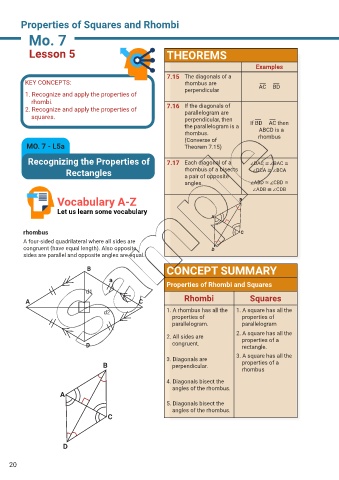 2. Recognize and apply the properties of 7.16 If the diagonals of
