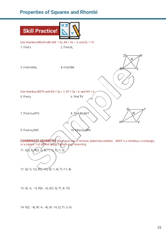 COORDINATE GEOMETRY Given each set of vertices, determine whether ▱QRST is a rhombus, a rectangle,