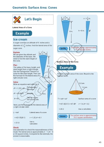 ≈ 8.1 Take the square T = πr + πr² Surface area of a cone