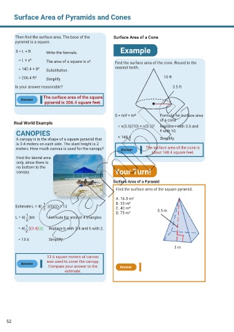 meters. How much canvas is used for the canopy? Answer The surface area of the cone is