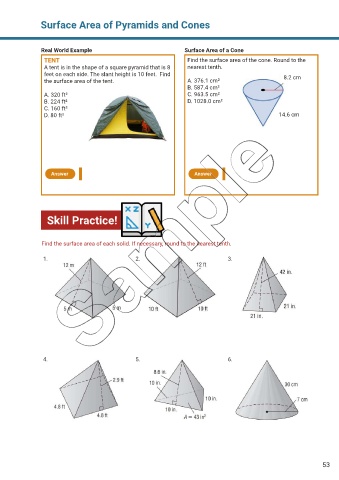 A tent is in the shape of a square pyramid that is 8 nearest tenth.