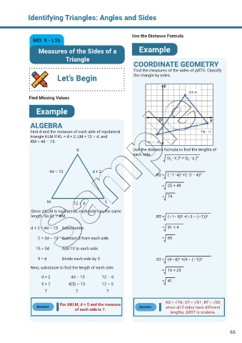 K Use the distance formula to find the lengths of