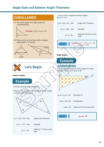9.1 The acute angles of a right angle are m∠3 + 63 + 79 = 180 Angle Sum Theorem.