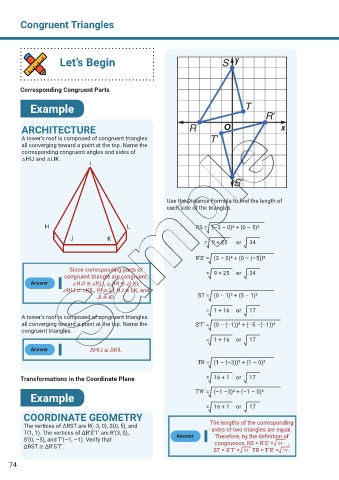 The vertices of ΔRST are R(–3, 0), S(0, 5), and The lengths of the corresponding