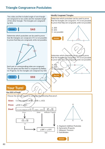 Each pair of corresponding sides are congruent. B. SAS