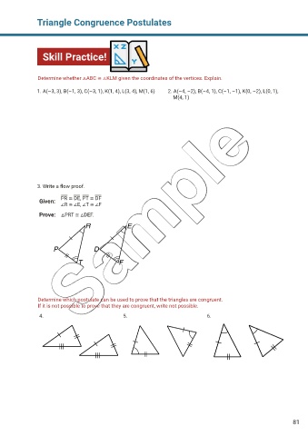Determine whether △ABC ≅ △KLM given the coordinates of the vertices. Explain.