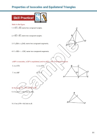 △ABF is isosceles, △CDF is equilateral, and m∠AFD = 150. Find each measure.