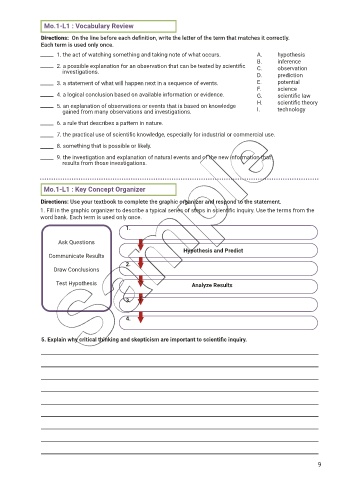 1. Fill in the graphic organizer to describe a typical series of steps in scientific inquiry. Use the terms from the