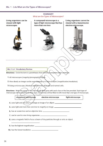 microscope will be used more than once. Some lines will be filled in with more than one type of microscope.