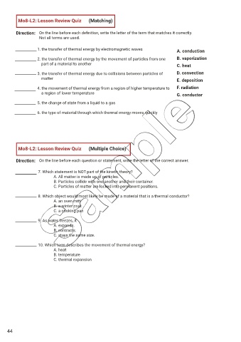 1. the transfer of thermal energy by electromagnetic waves A. conduction