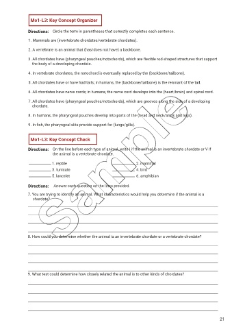 2. A vertebrate is an animal that (has/does not have) a backbone.