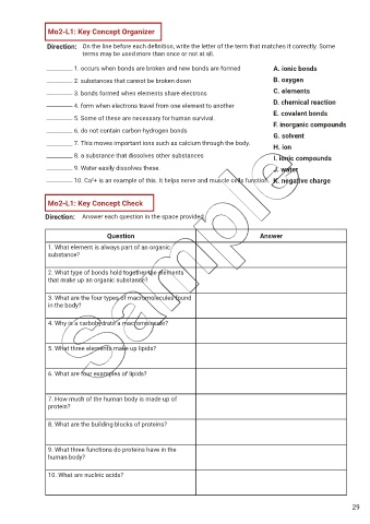 Direction: On the line before each definition, write the letter of the term that matches it correctly. Some