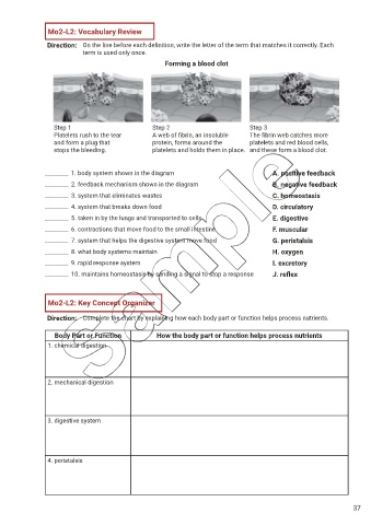 Direction: Complete the chart by explaining how each body part or function helps process nutrients.