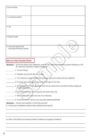 Direction: On the line before each statement, write P if the statement describes positive feedback or N if