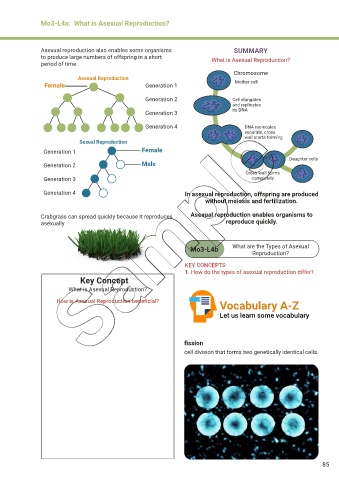 Crabgrass can spread quickly because it reproduces Asexual reproduction enables organisms to