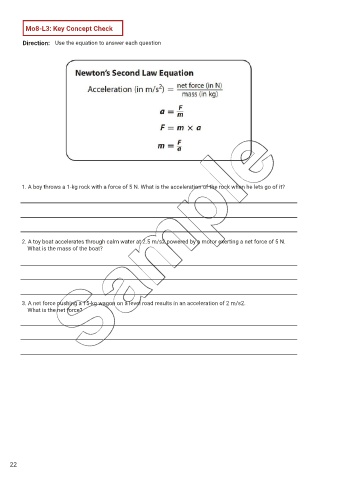 1. A boy throws a 1-kg rock with a force of 5 N. What is the acceleration of the rock when he lets go of it?