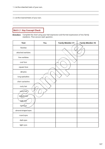 Direction: Complete the chart using your trait expression and the trait expressions of two family