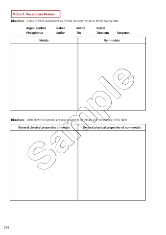 Direction: Write down the general physical properties of metals and non-metals in this table.