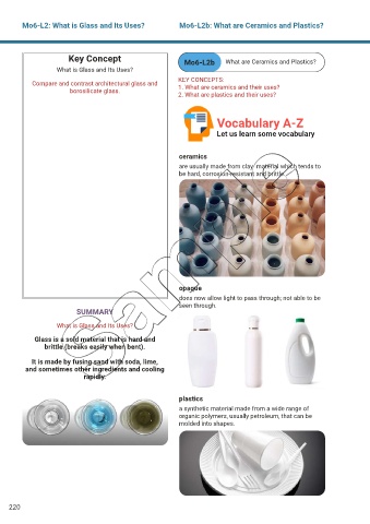 Mo6-L2: What is Glass and Its Uses? Mo6-L2b: What are Ceramics and Plastics?