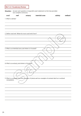 5. What is a wetland? Give two examples of plants and two examples of animals that live in wetland