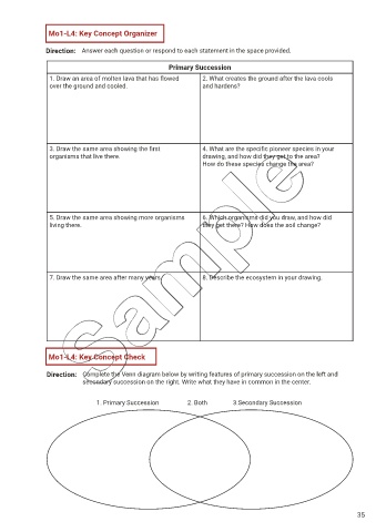 Direction: Complete the Venn diagram below by writing features of primary succession on the left and