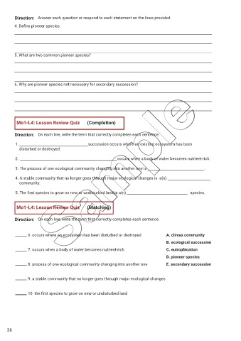6. occurs where an ecosystem has been disturbed or destroyed A. climax community