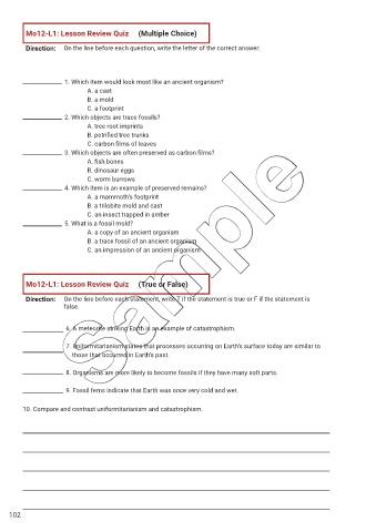Mo12-L1: Lesson Review Quiz (Multiple Choice)