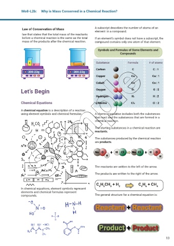 before a chemical reaction is the same as the total If an element’s symbol does not have a subscript, the