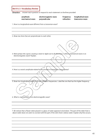 5. Draw two longitudinal waves that have different frequencies. Label the one that has the higher frequency.