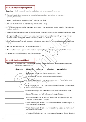 4. A(n) (electromagnetic/mechanical) wave forms when a source of energy causes particles that make up a