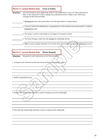 Mo10-L1: Lesson Review Quiz (Short Answer)