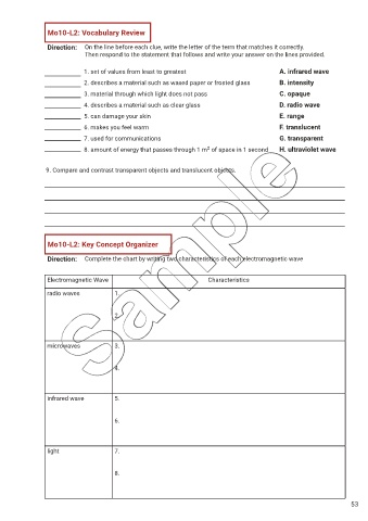 Direction: Complete the chart by writing two characteristics of each electromagnetic wave