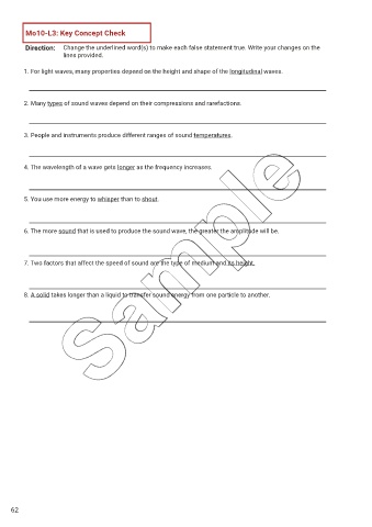 8. A solid takes longer than a liquid to transfer sound energy from one particle to another.