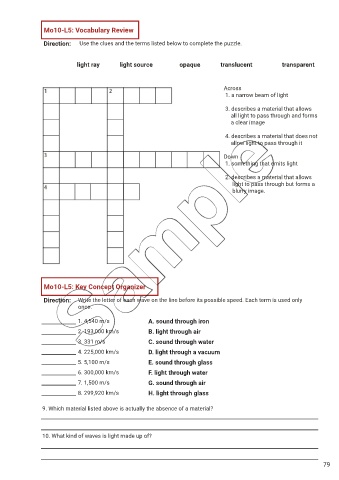Direction: Write the letter of each wave on the line before its possible speed. Each term is used only