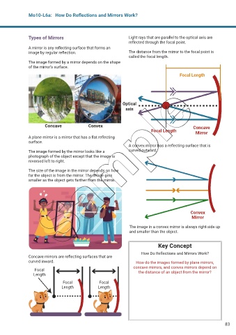 Types of Mirrors Light rays that are parallel to the optical axis are